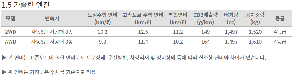 최근 SUV 차량들을 활용한 차박 트렌드 설계에 잘 반영하여 만들어 낸 것 같다. 다만 사진상으로 2열 시트와 트렁크 하부판의 평탄화가 좋지 않아 보여 실제 모델을 확인 해보아야 할 것 같다. 최고 출력은 170마력에 토크는 28.6으로 투싼과 스포티지의 180마력, 27 토크와 엇비슷하다. 엔진은 디젤 없이 1.5 가솔린 엔진만 선택 가능하다.